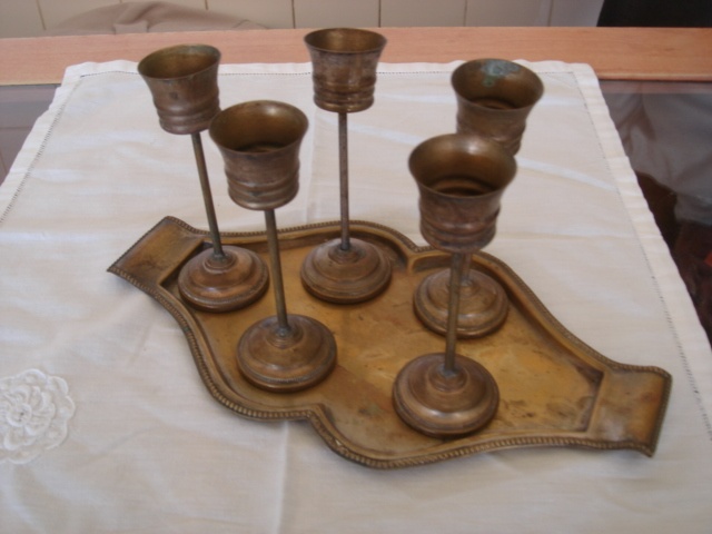 Predám súpravu 5 štamperlíkov + tácka, výška štamperlíka 10,5 cm. Pošlem aj na dobierku. 25€