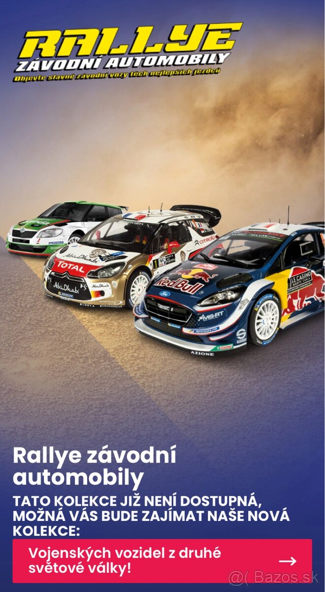 Na predaj zbierka Rally modelov v mierke 1:43 značky Deagostiny . Zbierka je v počte 66 , všetky modely v plastovej vitrínke.