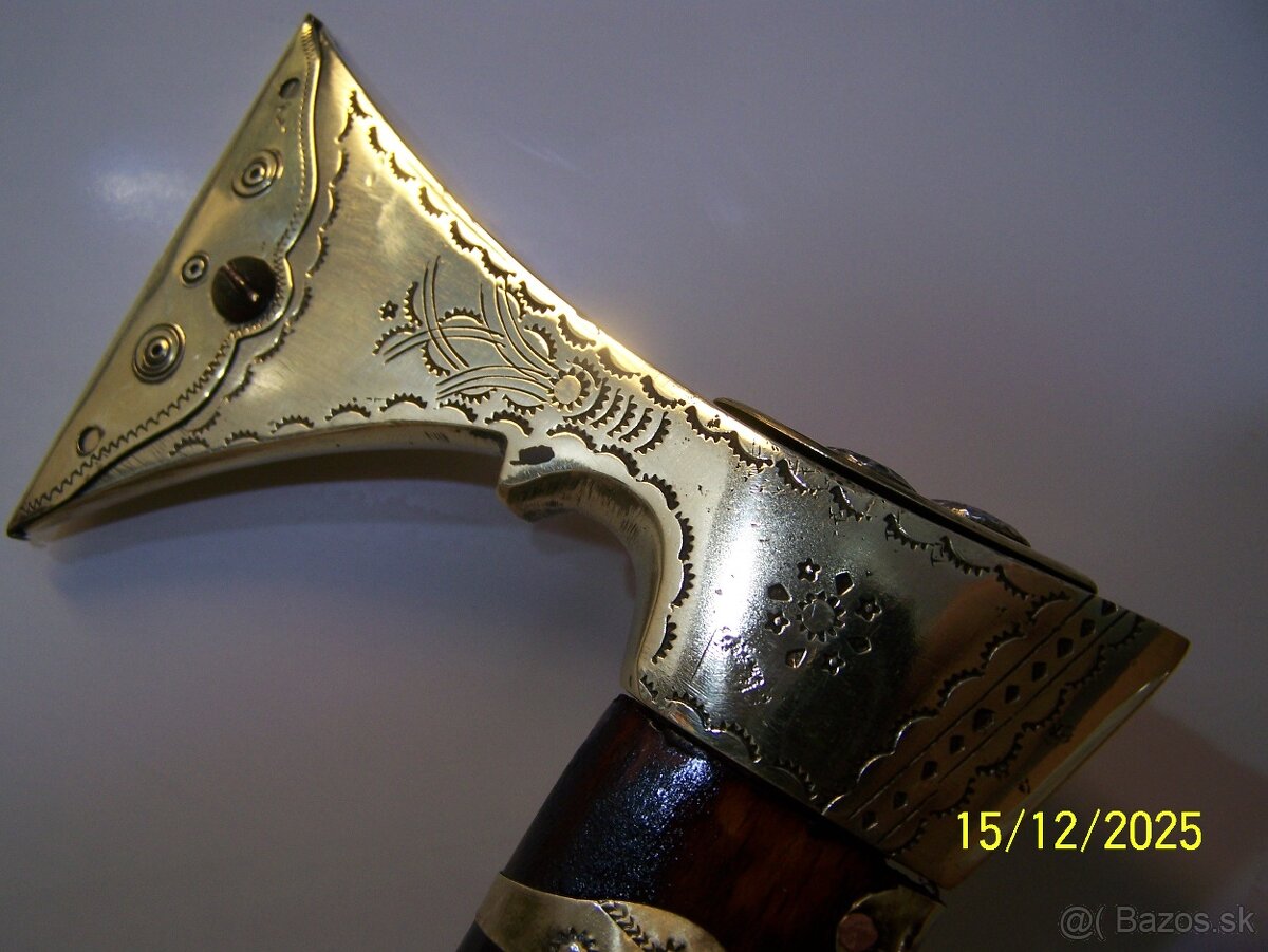 Predám valašku goralského typu. Čepeľ mosadzná s krytom ostria, gravírovaná obojstranne. Porisko 85 cm zdobená mosadzným plieškom a nitmi. Cena 90,- EUR. Zašlem i na dobierku.