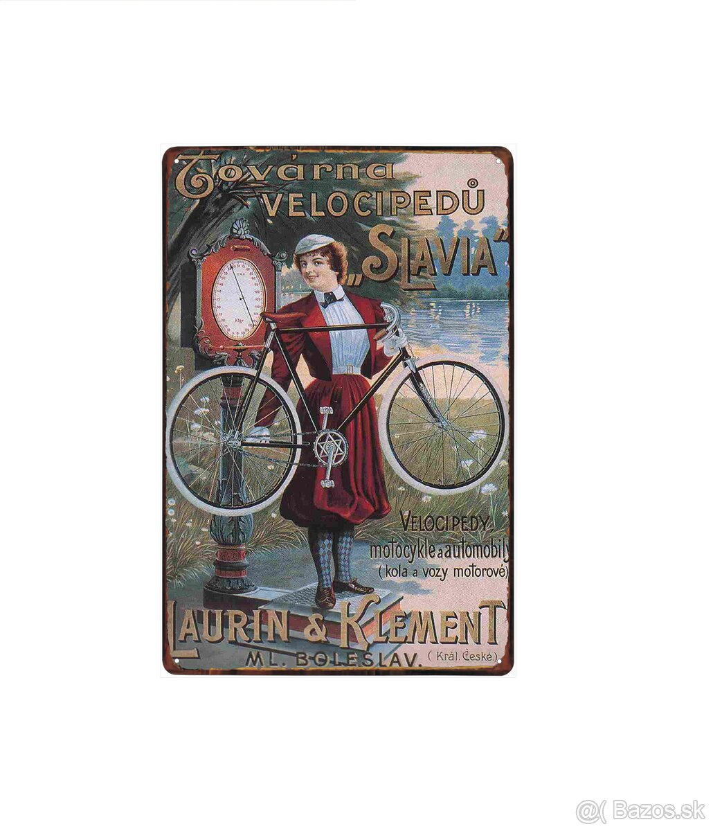 plechová cedule -Laurin & Klement: Továrna velocipedů Slavia