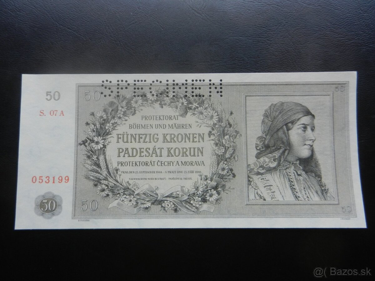 Bankovky Protektorát perforované a neperforované