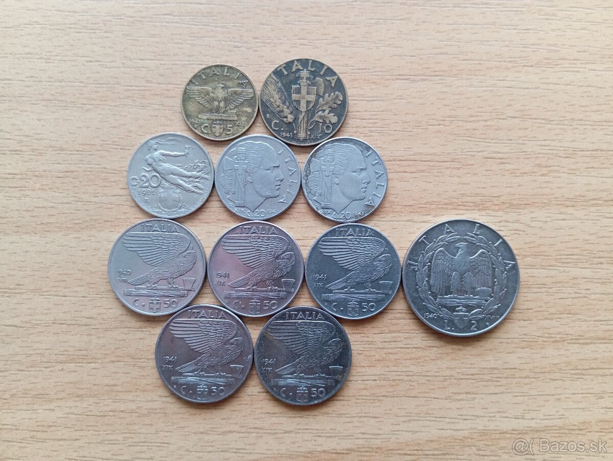 Predám Talianske staré mince 5,10,20,50ct za 2 Eura/kus, 2 Líra 1940 za 4 Eur