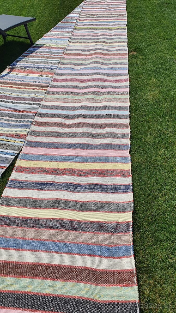 Predám ručne tkané koberce. Nikdy nepoužité. Každý koberec má dĺžku 23 metrov, šírku 72 cm. Cena za meter 8€. Cena za celý bal koberca je 160€. V prípade záujmu viem skrátené koberce obšiť bavlneným lemom(10€ ks - 2 strany). Pri záujme ma kontaktujte telefonicky