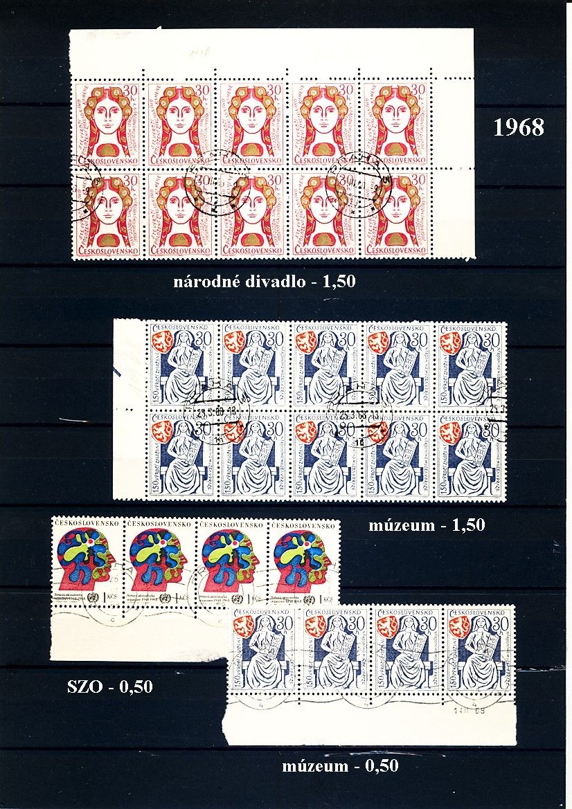Predám v pekne zachovalých stavoch razítkované poštové známky Československo ročníky 1968 až 1970 ...viacbloky známok s perfektným lepom,.... cena pod známkami + poštovné dobierkou.