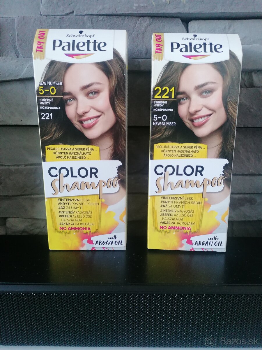 Predám 2 nové nevyužité farby na vlasy Palette Color Shampoo, odtieň 221 Stredne hnedá. Cena za kus 2€.