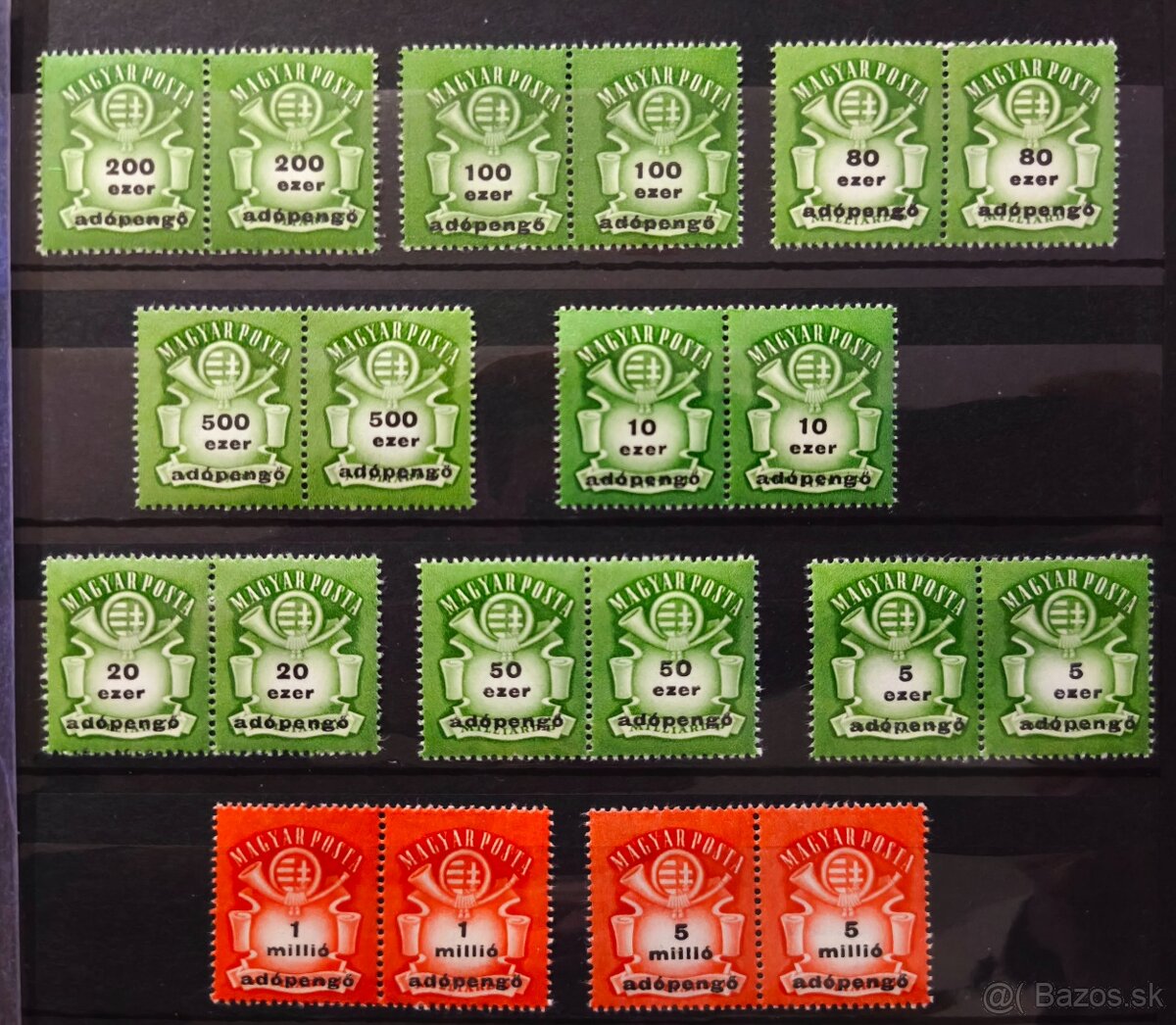 Zbierka známok Maďarsko, až na pár kusov zo stopou po nálepke, všetko čisté s plným lepom**,cena známky 20€,aršíky 18€.Pri kúpe spolu cena 35€+poštovné ,malý album v dobrom stave zdarma.Všetky fotky pošlem v prípade záujmu do správy.