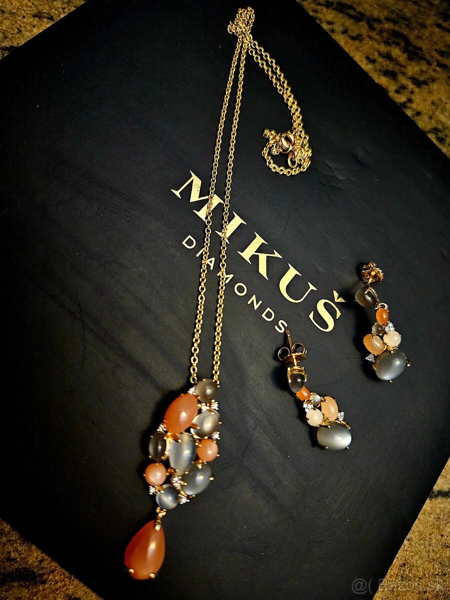 Vsetko rucne, limitovane vyrobene zo zlteho zlata a osadene mesacnym kamenom, aquamarinom, diamantami atd, realnymi kamenmi..
