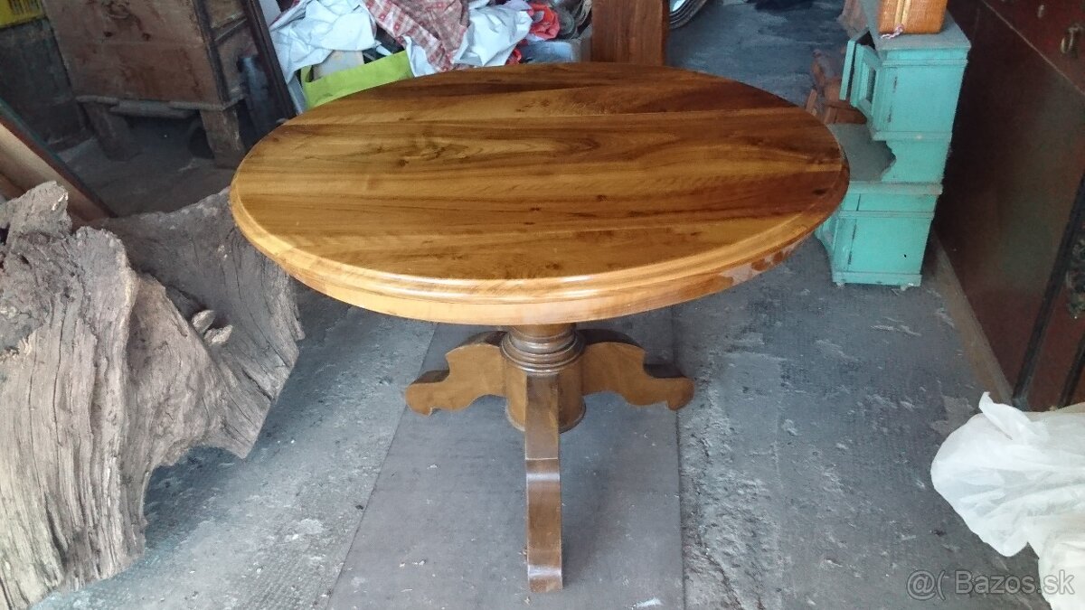 Stôl okrúhly – jedálenský. - [14.11. 2025]Tento drevený okrúhly jedálenský stôl má dominantnú stĺpovú základňu pripomínajúcu piedestál. Stĺpová noha tohto stola je vyrobená z masívneho dreva a je krásne vyrezávaná , čo robí tento jedálenský stôl výnimočným. Ide o veľký jedálenský okrúhly stôl, za ktorým sa pohodlne usadí do 6 osôb. S týmto ...