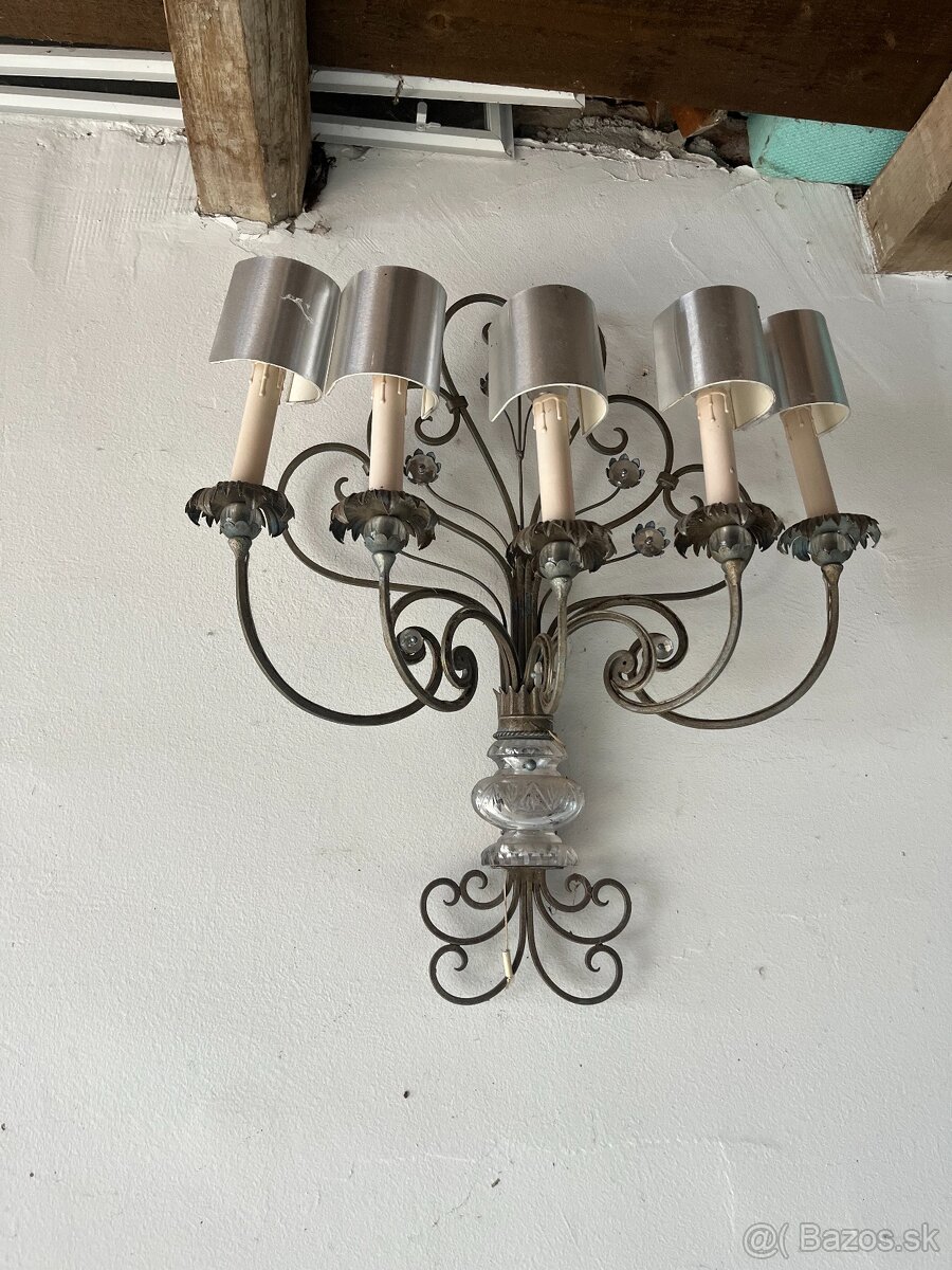 Veľké francúzské nástenné svietidlo v štýle Maison Bagues z polovice minulého storočia z brúseného křištálu a kovu.