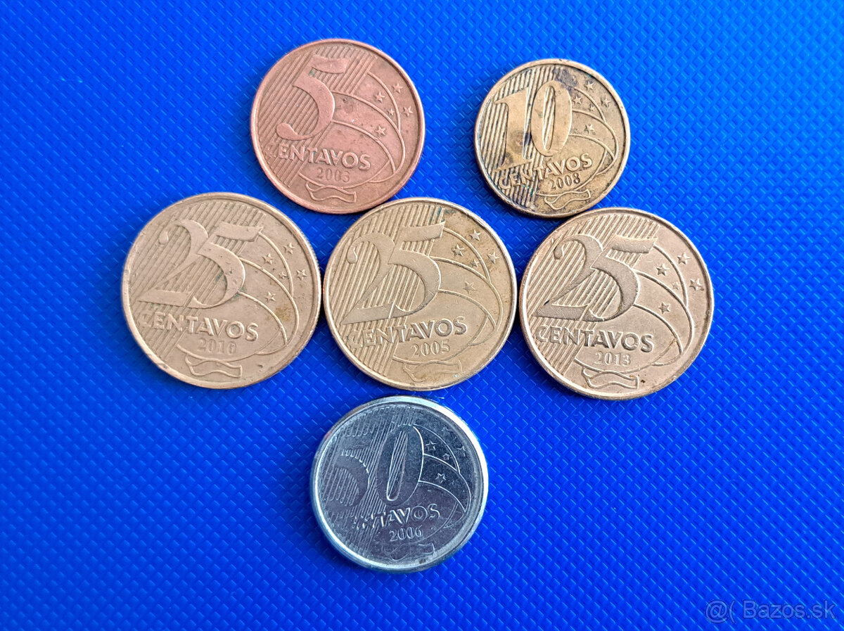 Predám 6kusov brazílskych obehových mincí. Cena 1 Euro je za všetky spolu. Možná aj výmena za srbské alebo severomacedónske mince 1 dinár resp. 1 denár.