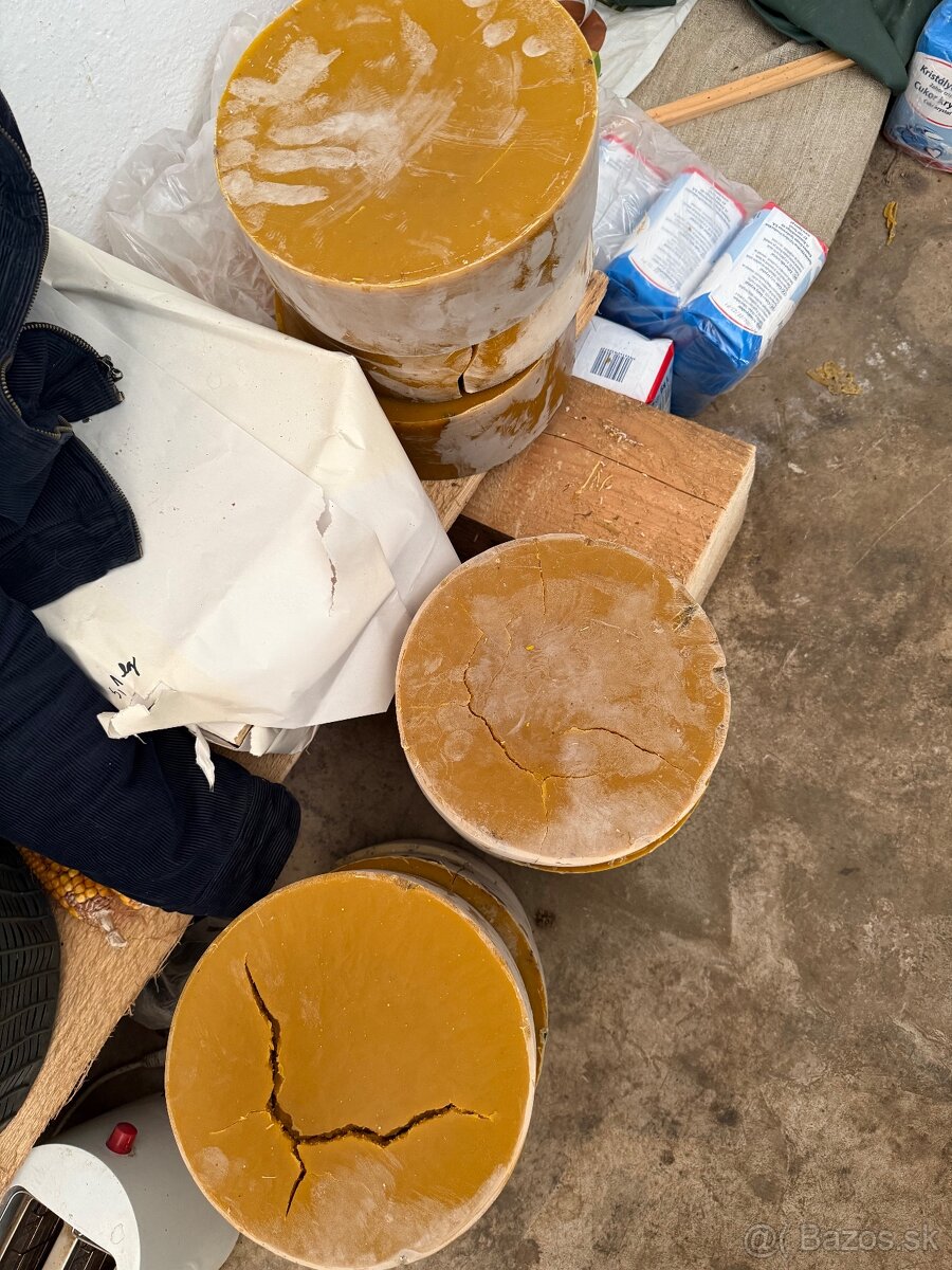 Predám včelí vosk - [19.11. 2025]Predám včelí vosk viď.foto.Jedna tehlička má cca 750g-850g.K dispozícii ešte asi 70ks.cena 12,-€ za kg