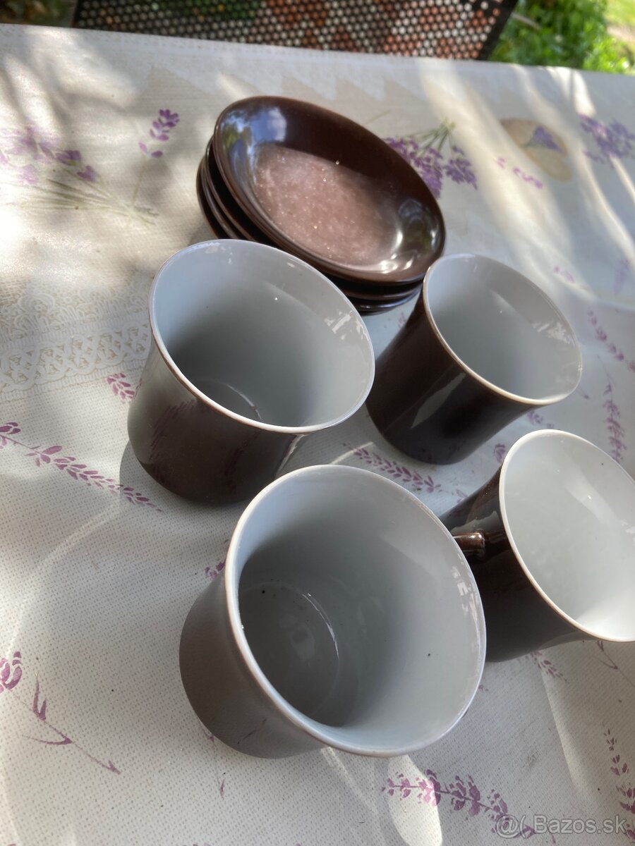 Čierne šálky - [28.12. 2025]Retro šálky - 5 ks, tanieriky 6 ks, cukornička 1 kus. Cena 5 € + poštovné 3 € doporučene ako balík na poštu, najradšej osobný odber. Na SMS nereagujem, treba volať alebo napísať e-mail.