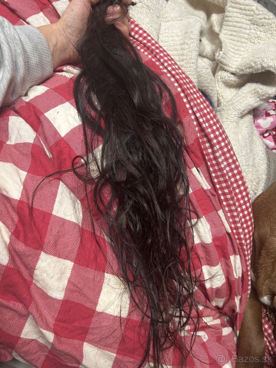 Predám ruské vlasy, dĺžka od 45-60 cm. Treba prerobiť spoje. Prepojené 3 krat, farba tmavo Hnedá. Je možné natáčať, žehliť , umývať. Proste všetko 😊 80 prameňov. Kontakt na email.