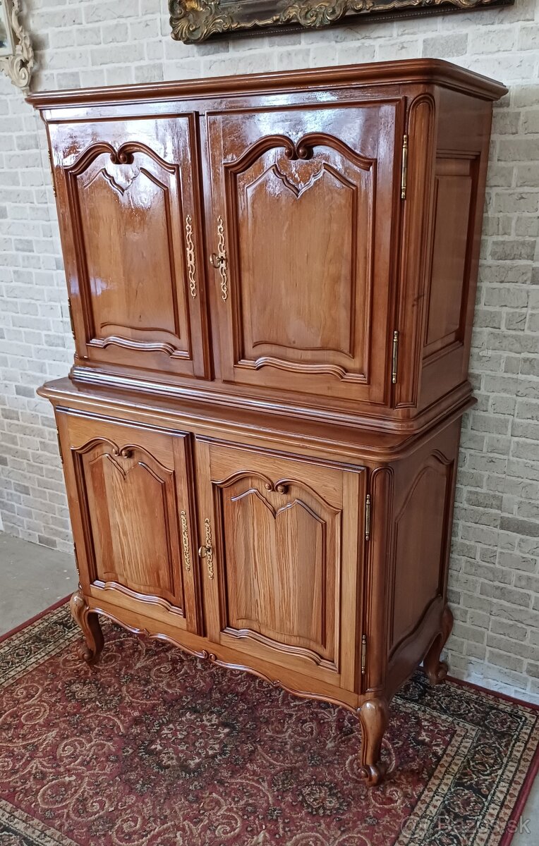 Ponúkam na predaj dvojdielnu skrinu (barovú skrinu) z masívu v štýle Louis. Rozmery - Š 106...V 157...H 51/39 cm. Pozrite moje dalšie ponuky