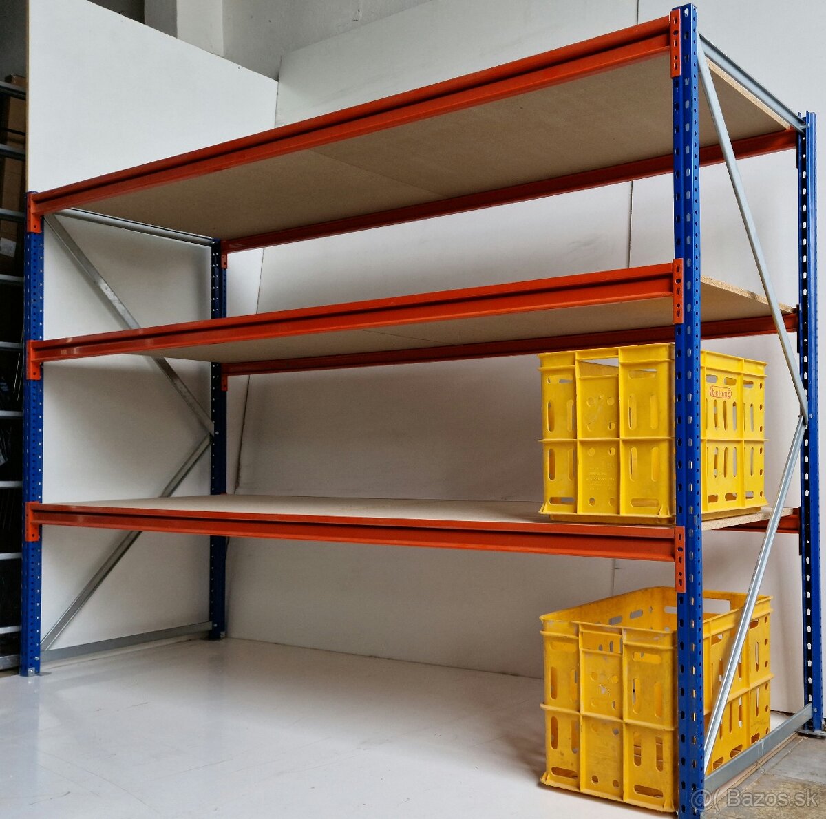 Priemyselné policové regály majú výšku 180cm, 200cm až do 380cm. Šírka políc 270cm hĺbka 70cm a 110cm. Alebo výška 200cm a 250cm s hĺbkou 60 a 80cm, tam je šírka políc 200cm. K regálu sú v cene! aj pevne drevotrieskové police hrúbky 18mm. Alebo výplne je možné odrátať.