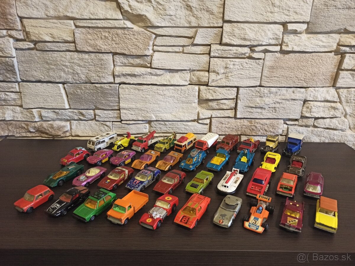 Prodám (možno i jednotlivě) stará kovová autíčka Matchbox z edice Superfast (klasické angličáky), vše Made in England by Lesney ze 70. letau), stav od velice zachovalých až po hrané, viz foto. Na podrobnosti se případně ptejte mailem. Cenu prosím nabídněte rovněž mailem. Mohu nabídnout i další modely Matchbox (Regular, Kings Size, Super Kings) a dále mnoho modelů Schuco, Norev, Politoys, Polistil, Mebetoys, Norev, Baravelli, Corgi Toys, Efsi, Maisto, Penny, Playart, Yatming apod. (konkrétní modely dotazujte). Koukněte i na mé další inzeráty, kde nabízím mnoho podobných modelů. Děkuji