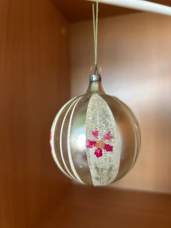Predám používanú staršia vianočné guľa z jemného fúkaného skla. Priemer gule je cca. 7cm.