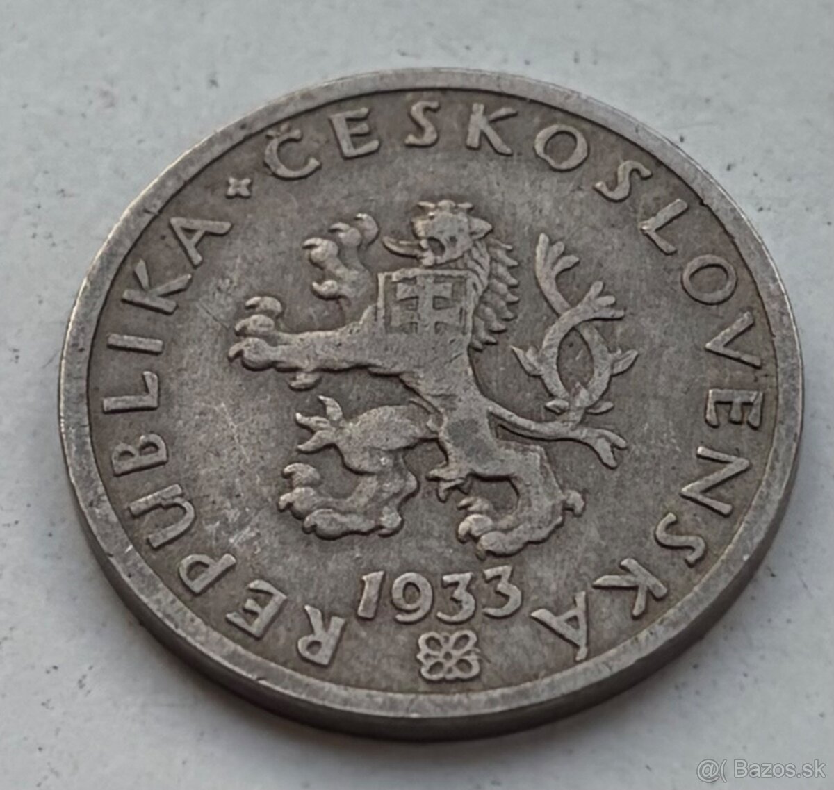 20 halierov 1933 RR (1. ČSR) - [4.12. 2025]Ponúkam na predaj zriedkavo sa vyskytujúcu mincu 20 halierov 1933.