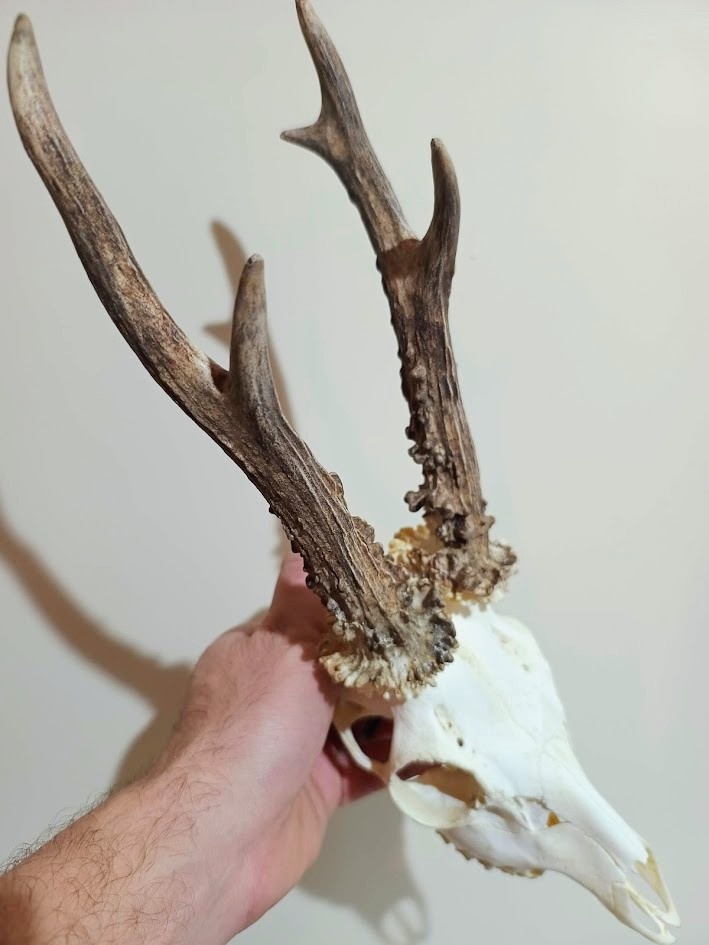 Trofej trofeje parohy parožie zhody.,.,., - [28.12. 2025]Predám perlovanú srnčiu trofej s krátkym hrubým parožím a veľkými ružicami.Váha vysušenej trofeje 456g.