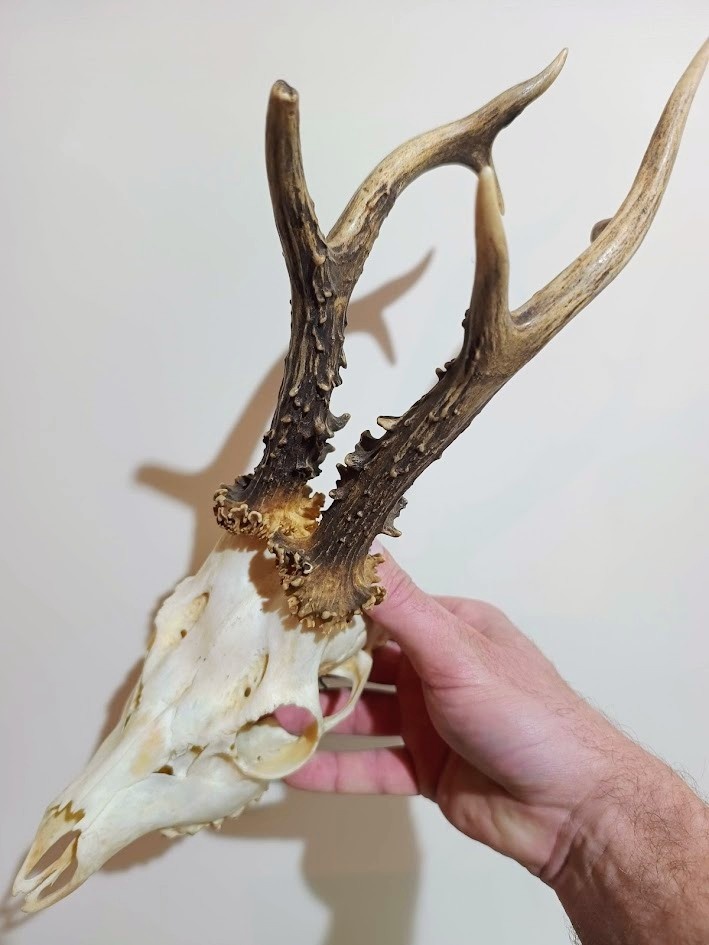 Trofej trofeje parohy parožie zhody.,.,., - [28.12. 2025]Predám perlovanú srnčiu trofej s krátkym hrubým parožím a veľkými ružicami.Váha vysušenej trofeje 456g.