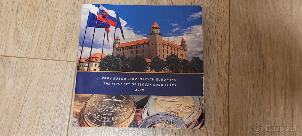 Neotvorené balenie euromincí z roku 2009. Zberateľský kúsok. Obsahuje aj striebornú mincu. Balenie je trocha poškodené, ale nemá žiaden vplyv na stav mincí