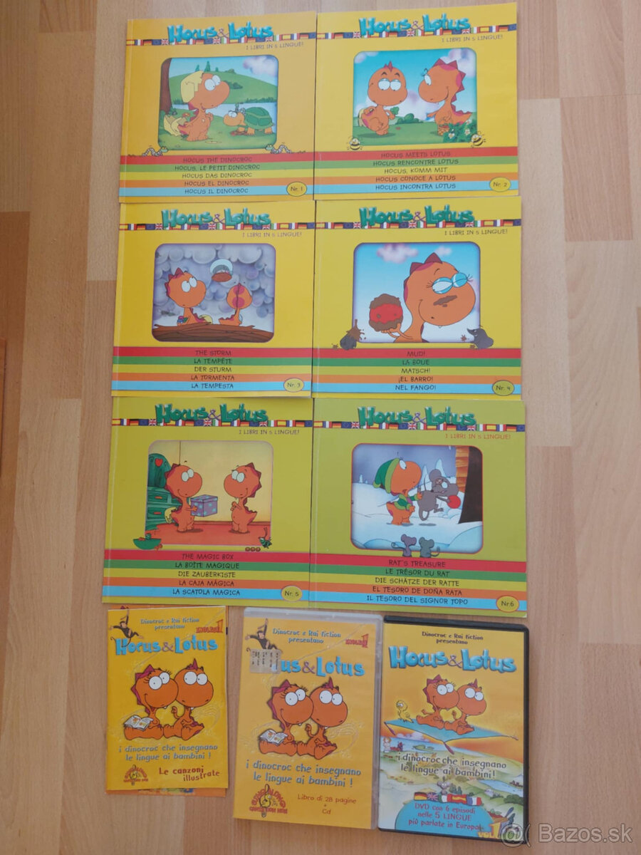 Predám Hocus & Lotus sadu úroveň 1, ktorá obsahuje knižky č. 1-6 v anglickom, francúzskom, nemeckom, španielskom a talianskom jazyku spolu s DVD. Ďalej 28 stránovú knižku v angličtine s CD. Cena za všetko 20 Eur.