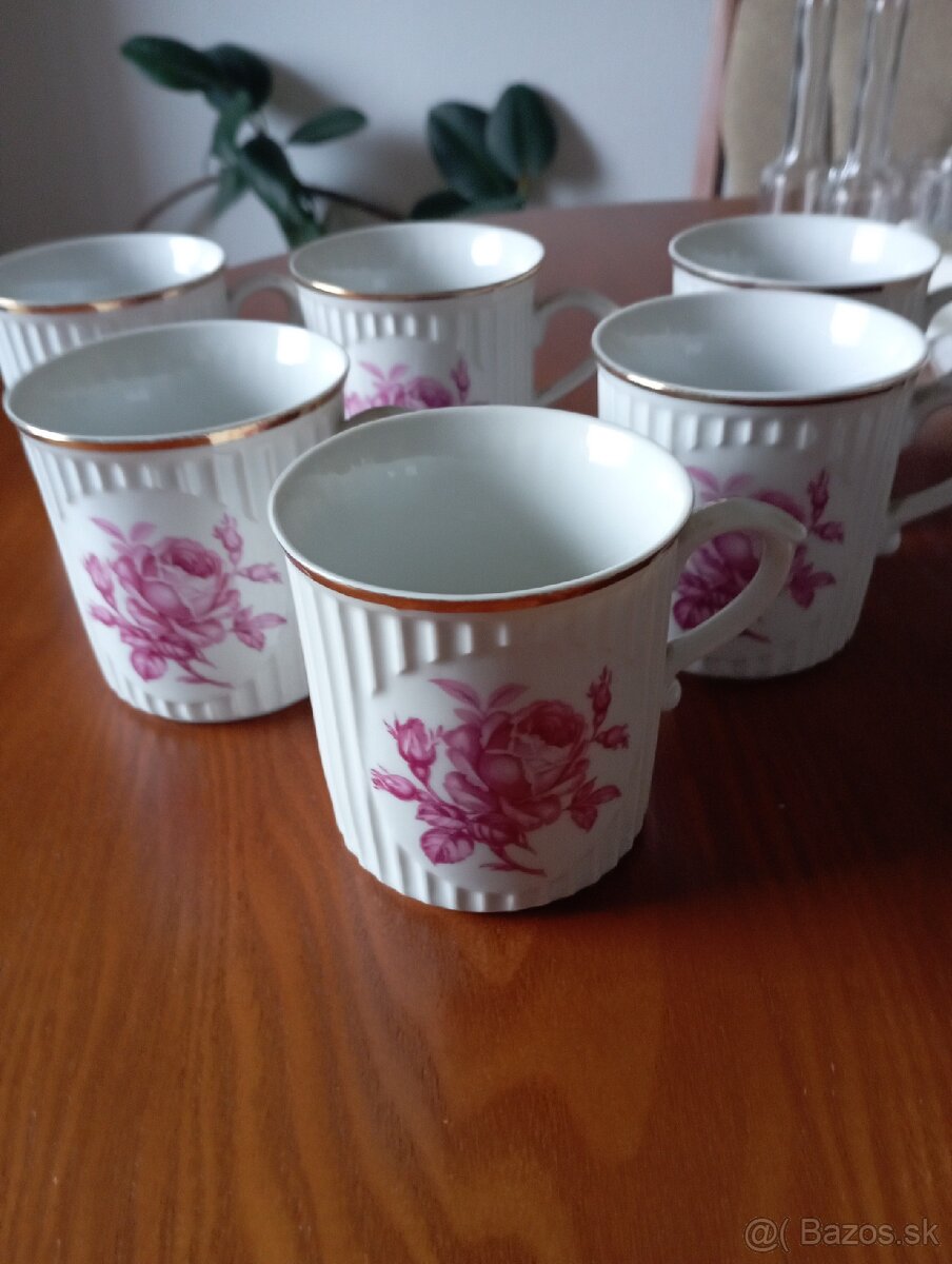 Staré porcelánové šálky,- raňajkové,značkový porcelán červená ruža , vitrinovy stav.Pozri moje ďalšie ponuky.
