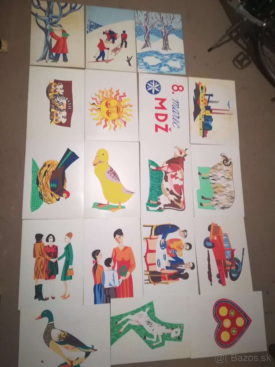 Predam velmi zaujimavo graficky spracované grafiky na rôzne témy - príroda, zvieratá, šport, budovateľská. Nie sú na papieri ale na nejakom plastovom hrubsom materiály. Toto už dnes nikto nevyrobí. Cena je podľa stavu a typu, par ich je flakatych, tam cena začína na 3€ tie pekne dalsie sú v rozmedzi 10-15, budovateľske sú po 20€, vacsina je ale vo velmi peknom stave, pri kupe viac ks zlava.