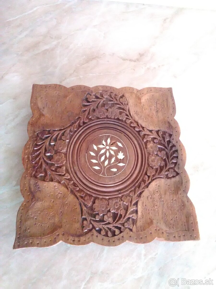 Predám starý orientálny indický stolček,vhodný ako dekorácia,alebo podnos na kvetináč.Rozmer 23*23cm a výška 24cm.Stav dobrý,cena 25eur.Volat,nie sms.