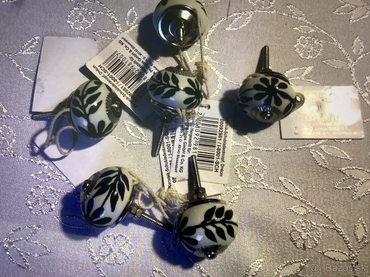 Predám nové keramické uchytky na nábytok, mam dva druhy bielo modré 6ks a bielo čierne 6ks aj na dobierku…dovoz z Francuzk…1ks = 3€…