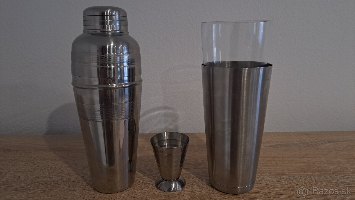 Predávam dva barové shakery a jeden odmerný pohárik (jigger), vhodné na prípravu koktailov doma aj v bare.
