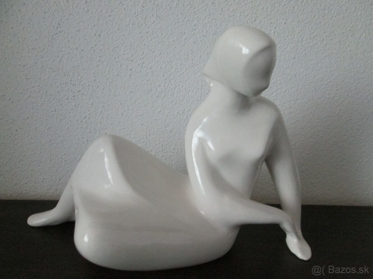 Predám značenú glazúrovanú bielu sošku Keramia Znojmo :Sediaca žena. Soška je v 100% stave, dĺžka až 27cm, výška 18 cm. Krásny dizajnový a hodnotný doplnok do moderného bytu.
