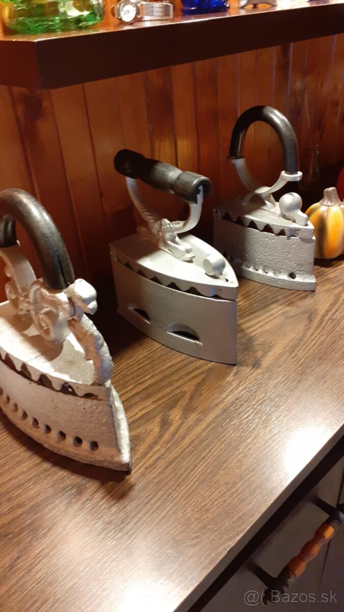 Predám 6 kusov strých žehličiek zachovalom stave cena za kus 15€ a váhu + misky ale nie originál.