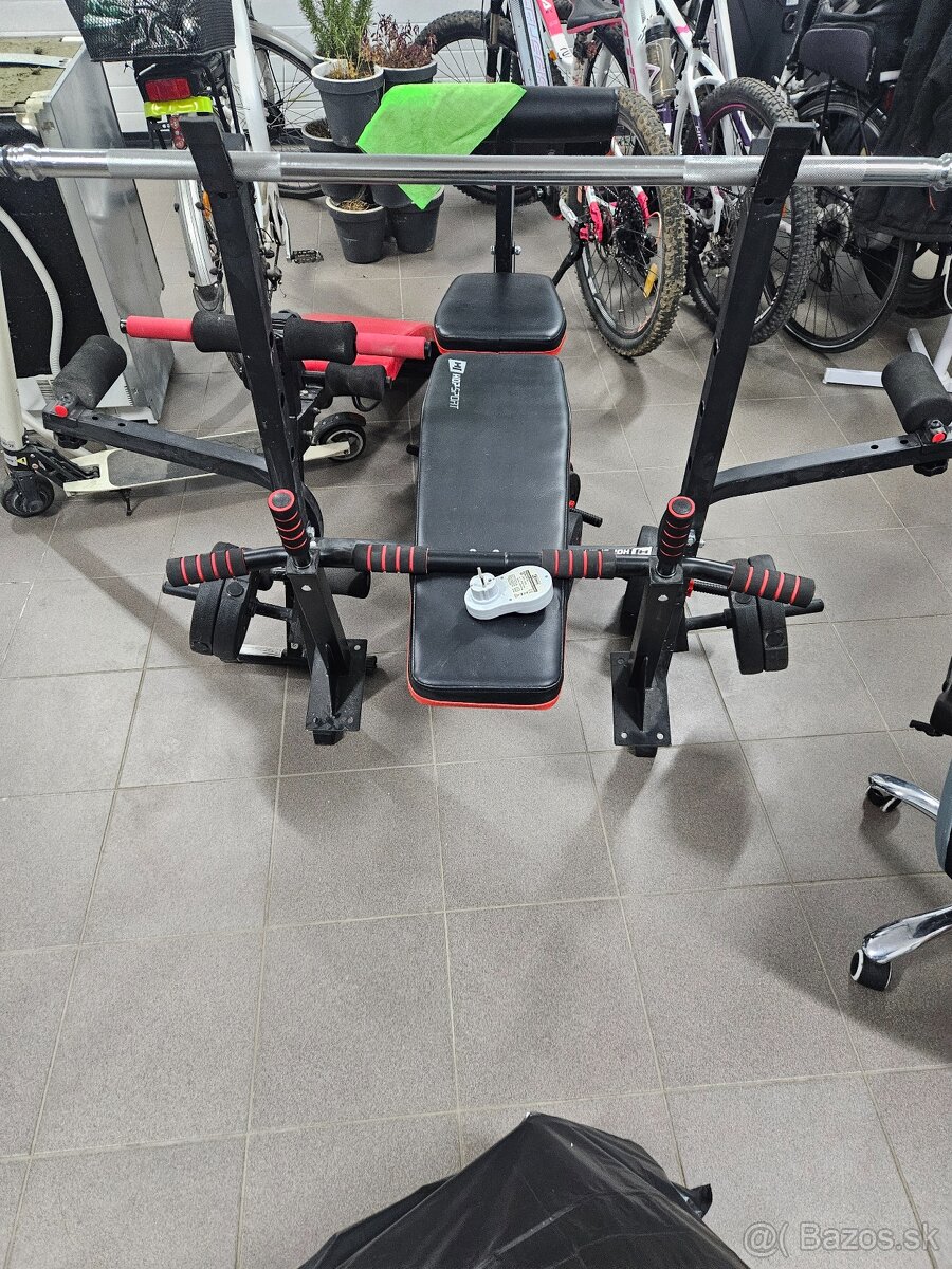 Predam činky jednorucky lavičky na cvicenie dlhá tyčka hrazda tak ako je na foto dve lavičky hrazda plus velka tyc bez zavazi a jednorucky aj zo zavaziami