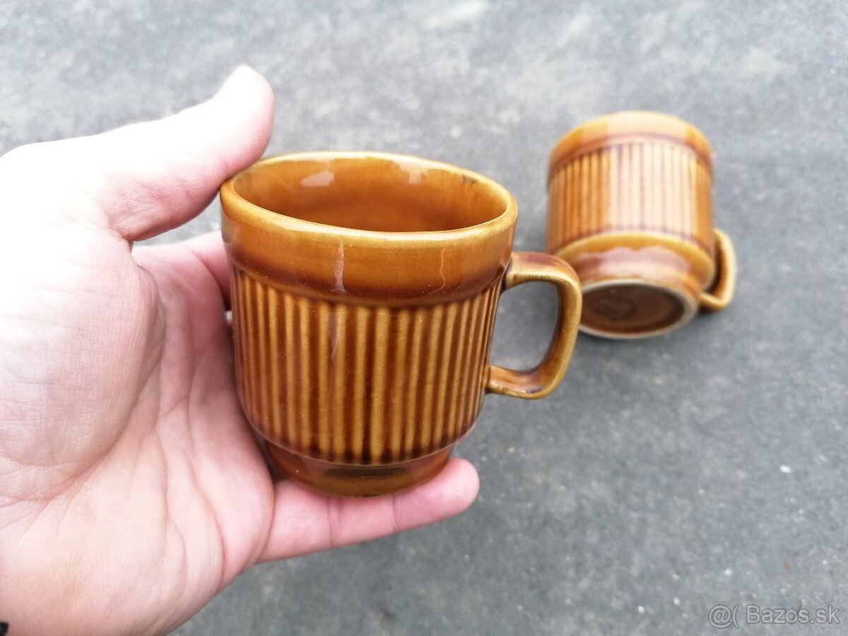 Predám 2ks keramické hrnčeky Kera Vitral hnedej farby s rebrovaným vzorom z tvrdenej keramiky. Výrobca Keramické závody v Znojme, Kera Vitral- každý kus značený. Výška hrnčekov 7,5cm. Cenu ponúknite