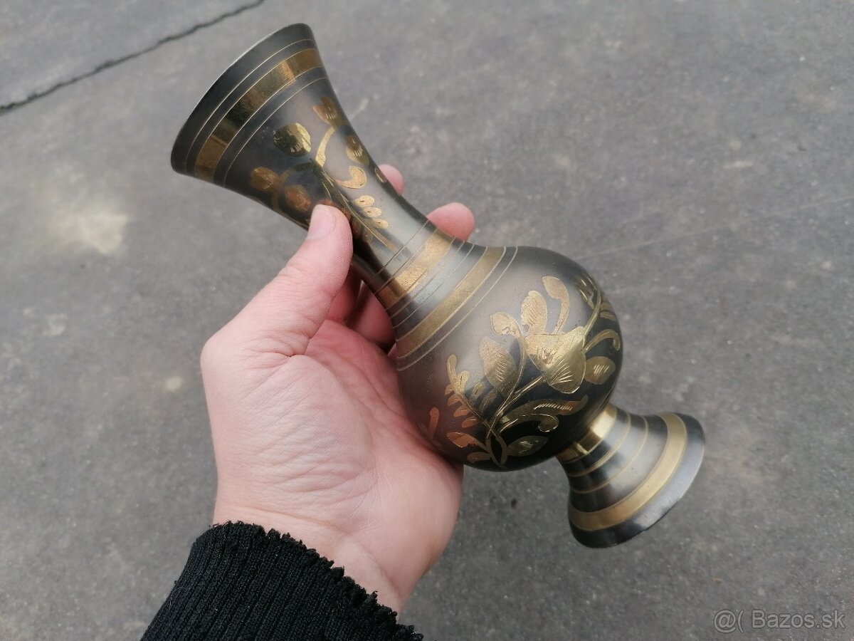 Predám mosadznú vázu s peknými ručne leptanými- gravírovanými kvetinovými vzormi. Výška 21cm. Cenu ponúknite