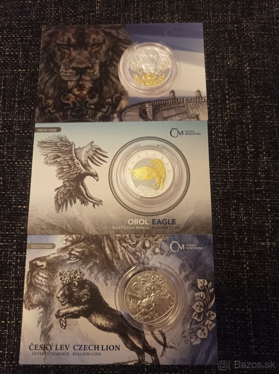 Strieborná uncová investičná minca Orol 2024 selekt. pokov Au proof číslovaný. 95€
