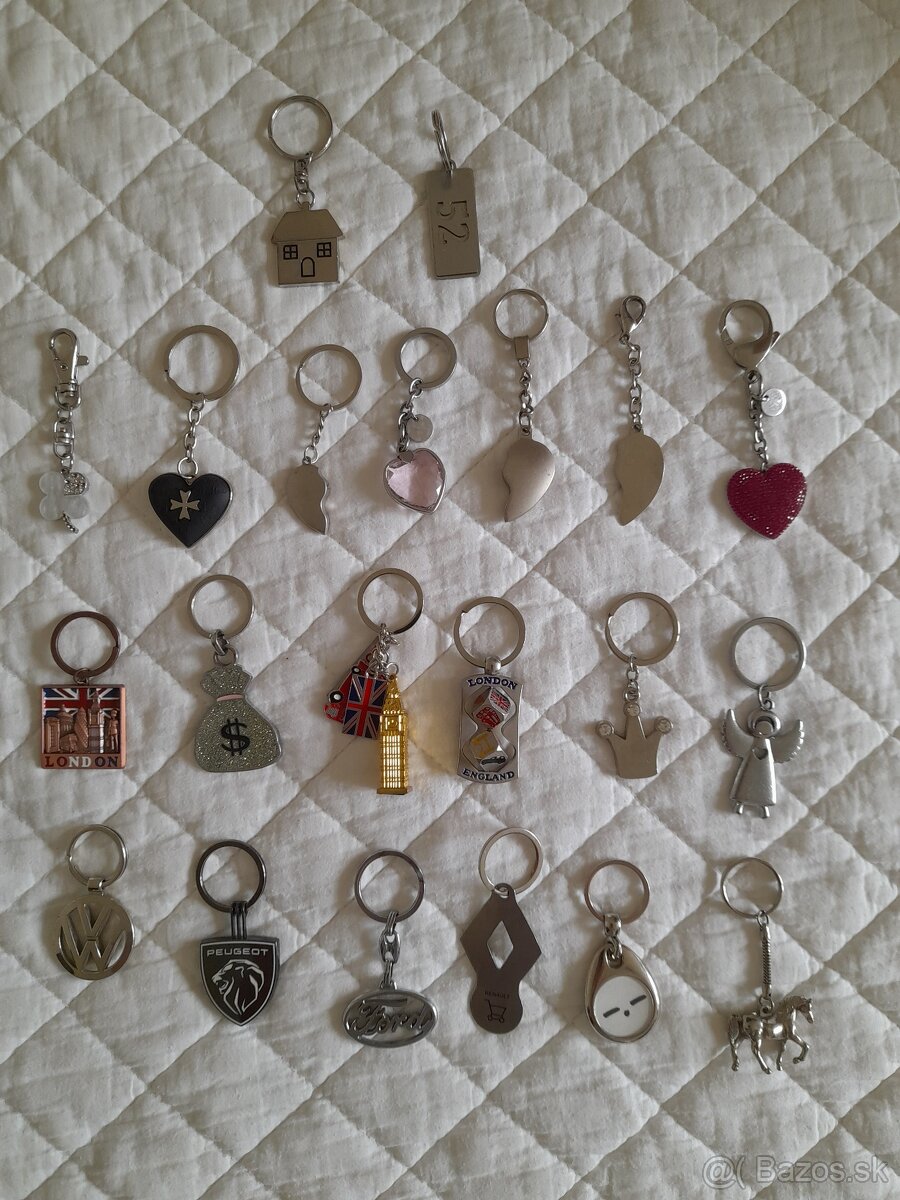 1. foto - prívesky na klúče - srdiečko, Londýn, peugeot, reanult, wolkswagen, ford, koník, anjel, mešec, číslo 52, korunka, domček a iné 5,00 eur