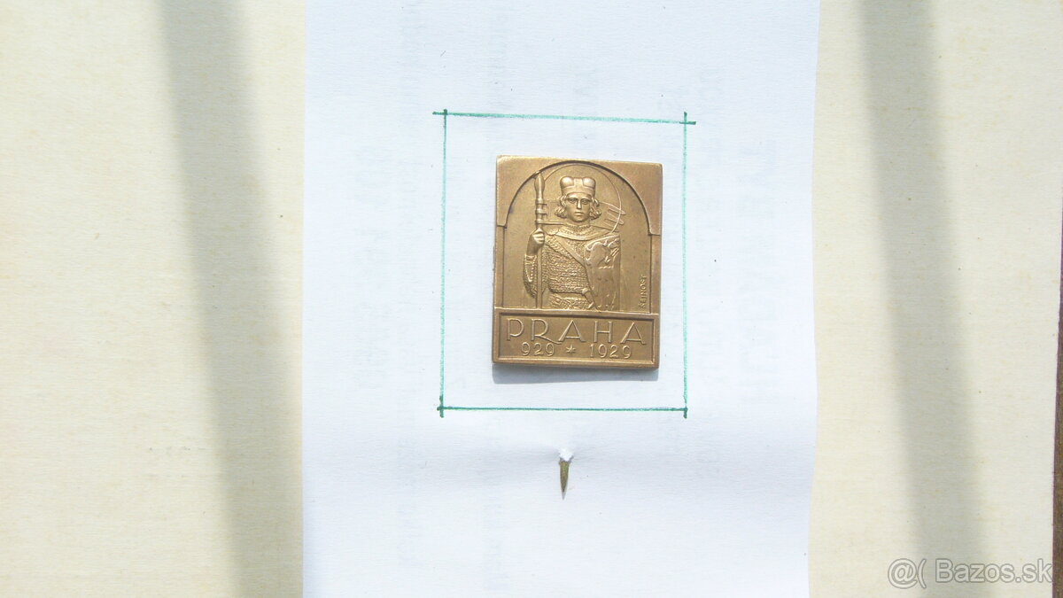 Predám kovový odznak sv. Václava k miléniu Prahy 929-1929, rozmer 24 x 30 mm, značený Šejnost.