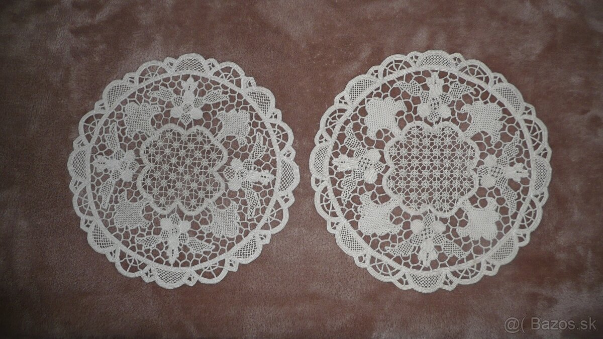 Predám pekné háčkované obrúsky:1.) okrúhle- priemer 22cm- 2ks, 2.) kosoštvorcový 44 x 70 cm- 1ks. Cena :dohodou
