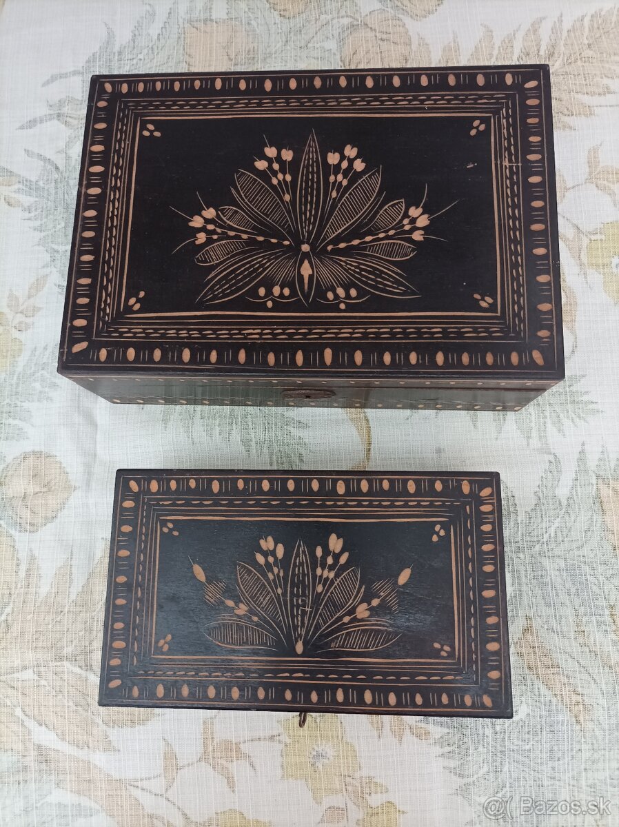 Predám 2 uzamykateľné vyrezávané retro dózy z dreva.