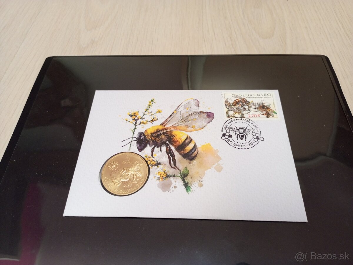 Dobrý deň. Ponúkam na predaj numizmatickú obálku s 5€ mincou včela medonosná. Celkom bolo vyrobených iba 300 kusov. Tento kus je už predaný. Foto ilustračné.