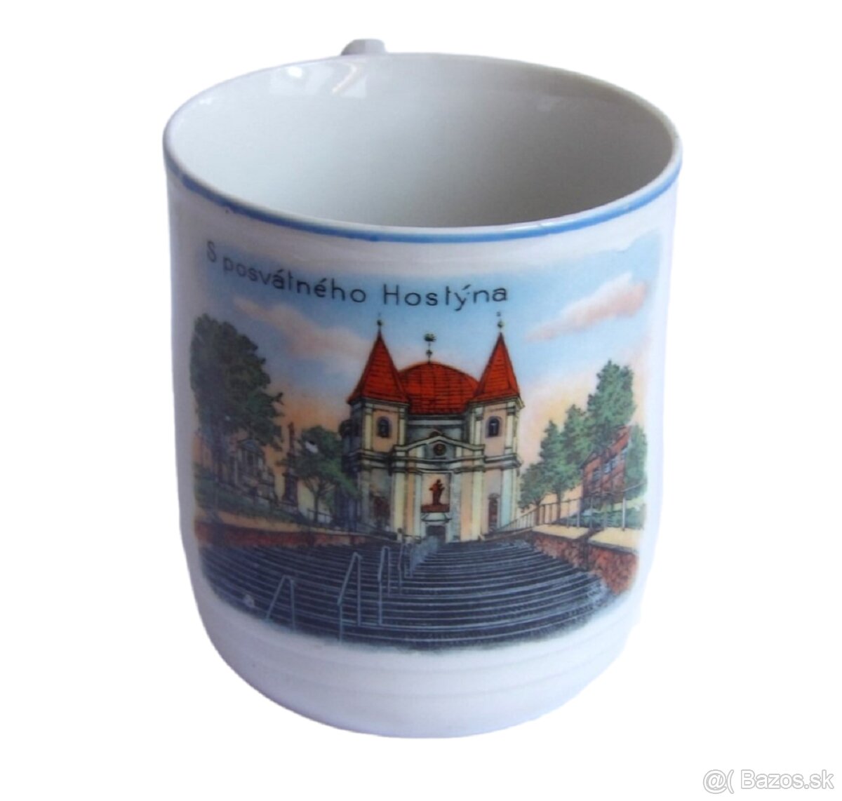 Starý hrnek z 30 tých let 20. století zdobený květinovým dekorem a vedutou z poutního místa Hostýn, výška 9 cm, průměr 7,5 cm, značeno vtlačeným číslem, kvalitní zabalení je samozřejmostí, dobírka Packeta 5,-€.