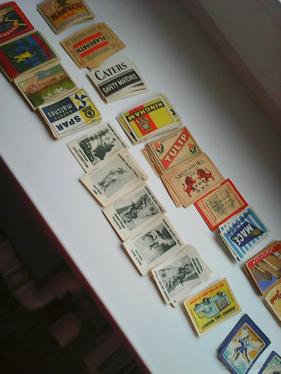 nalepky na zapalkove krabicky, 150 kusov, 26 roznych druhov z rokov cca 1957 az 1962