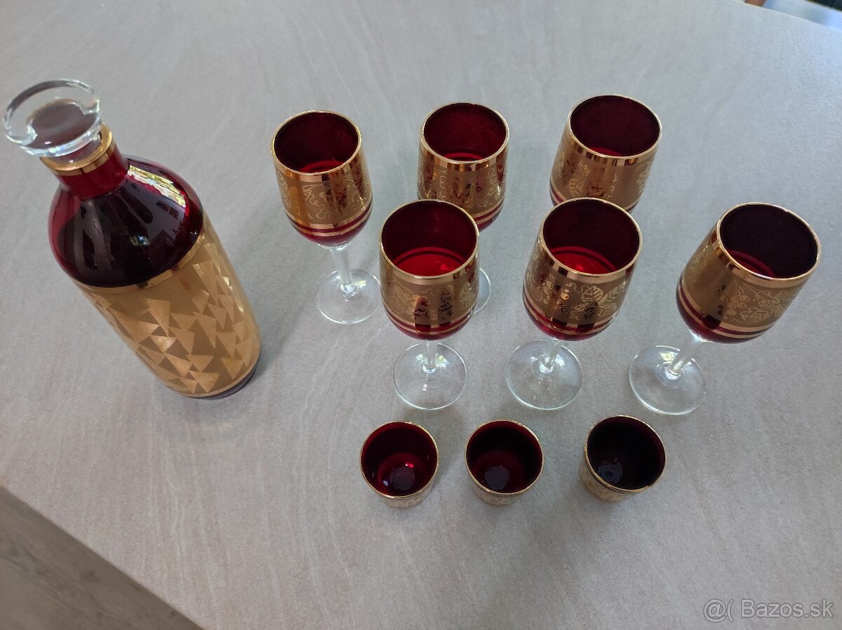 Predám sadu pohárikov na destilát a fľaštičku na destilát z červeného skla. Odber iba osobne Dunajská Lužná, Rovinka, Bratislava.