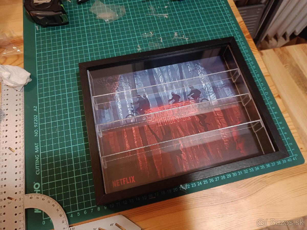Predám tento rámček na postavičky Stranger Things z Kinder Joy. V ráme sú poličky z plexiskla. Na druhej fotke je ukážka ako to vyzerá s figúrkami.