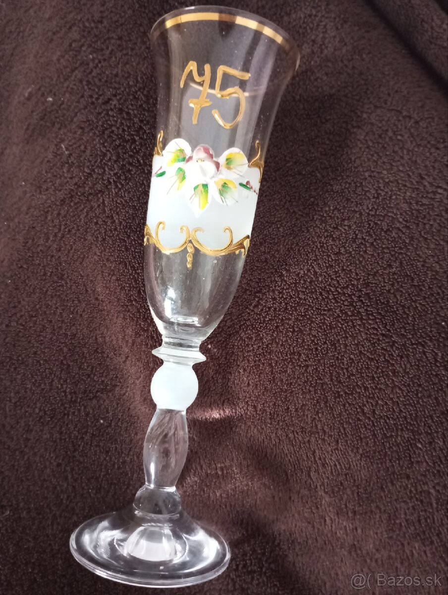 Ozdobný sklenený pohárik na prípitok, aperitív či víno, výška cca 20cm