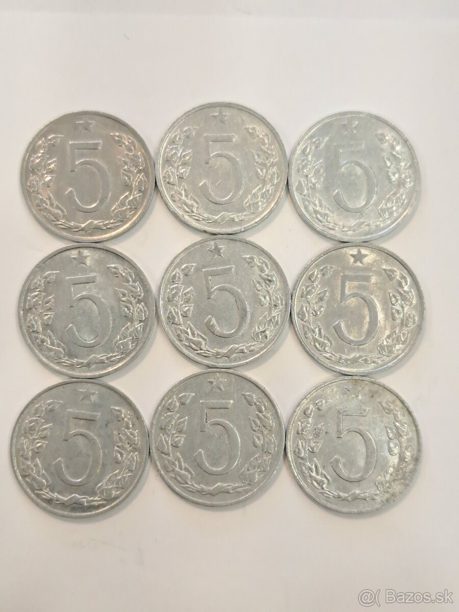 Ponúkam na predaj mince 5 halierov z roku 1962,1963,1966,1967,1970,1972,1973,1974,1975, cena za celok 18 euro, písať na email pozri ďalšie inzeráty.