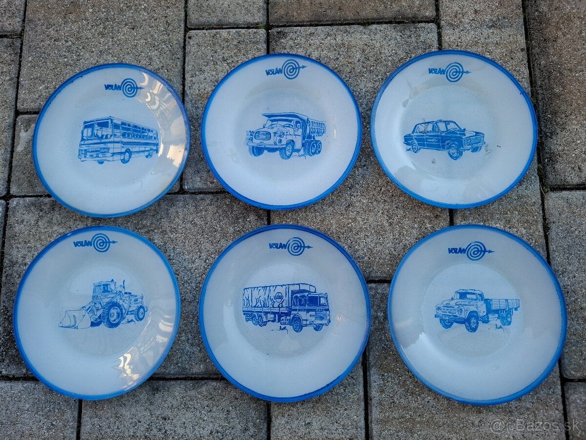 Predám zaujímavú súpravu tanierov s rôznymi strojmi a autami ako tatra , rába, lada, nakladač volvo ,Ikarus , Csepel