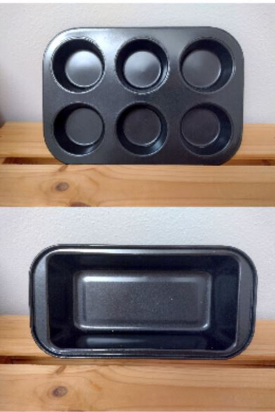 Napredaj doplnky do kuchyne, formy, nepouzite vhodna aj ako darcek. Cena spolu za dva forma na muffiny, košicky alebo sufle 26x18x3cm,Farba cierna. kuchynsky plech do rury na biskupský chlebíček alebo aspik. 25x13x5cm,Farba cierna formy neboli pouzivane, majú neprilnavy povrch a mozu sa umyvat v umyvacke riadu. Nepouzivane